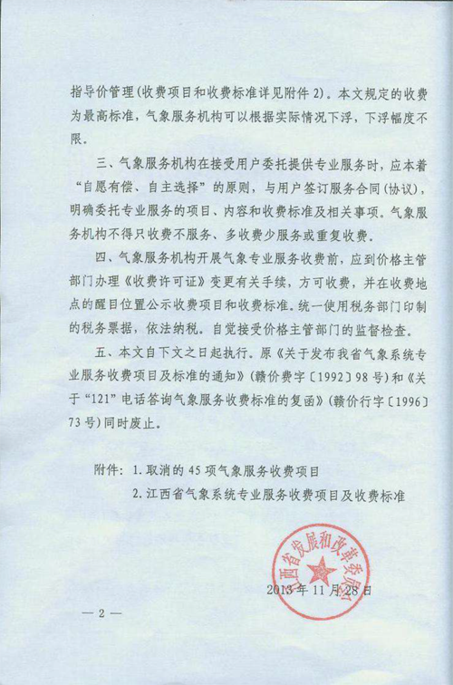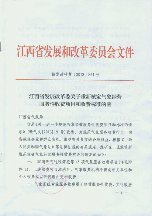 江西省發(fā)展改革委關(guān)于重新核定氣象經(jīng)營服務(wù)性收費項目和收費標(biāo)準(zhǔn)的函