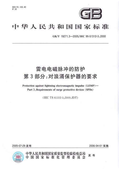 雷電電磁脈沖的防護(hù)第3部分:對浪涌保護(hù)器的要求