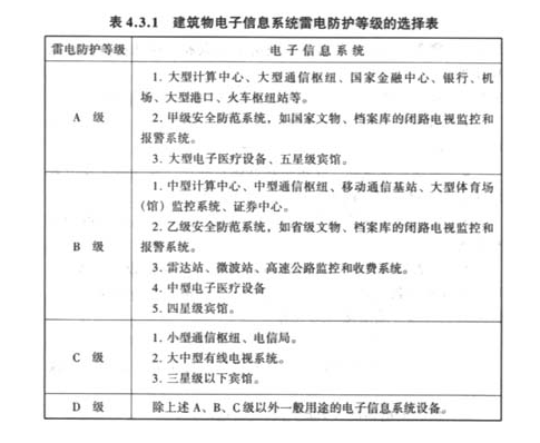 4.3.1建筑物電子信息系統(tǒng)宜按表4.3.1選擇雷電防護(hù)等級