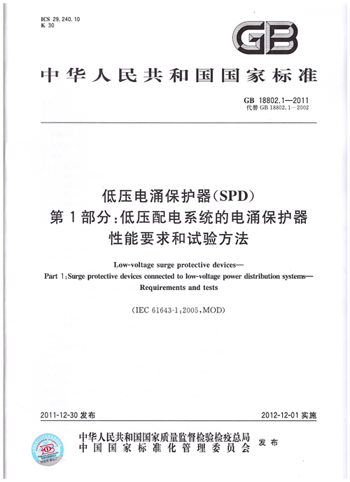 低壓電涌保護(hù)器(SPD)第1部分:低壓配電系統(tǒng)的電涌保護(hù)器性能要求和試驗(yàn)方法