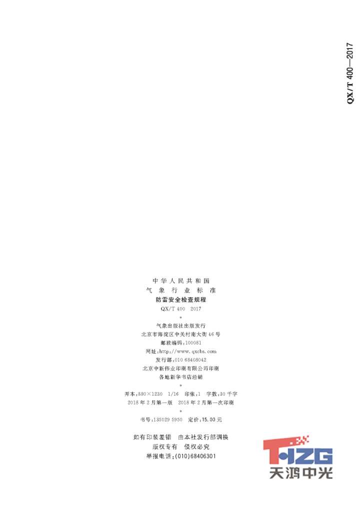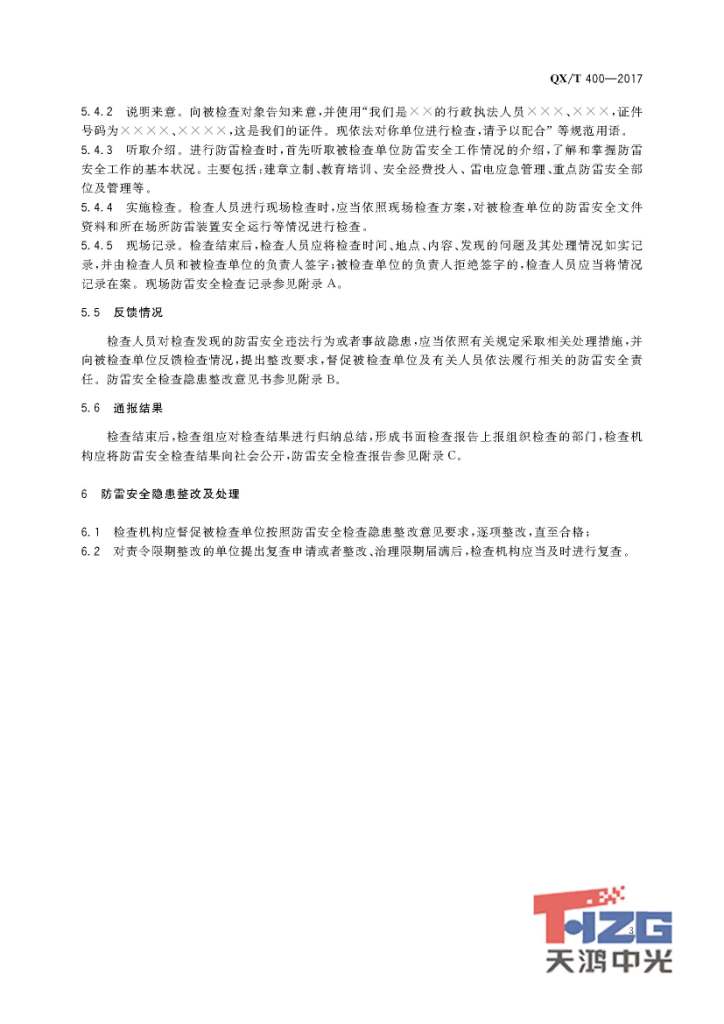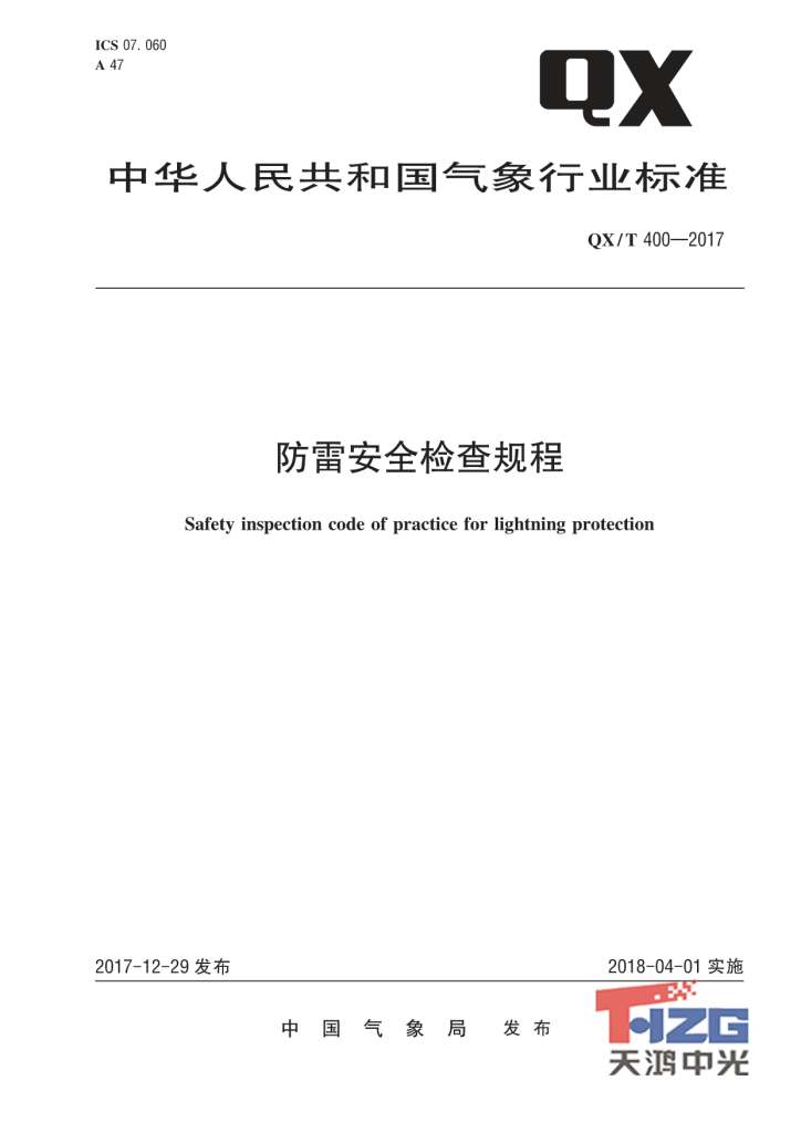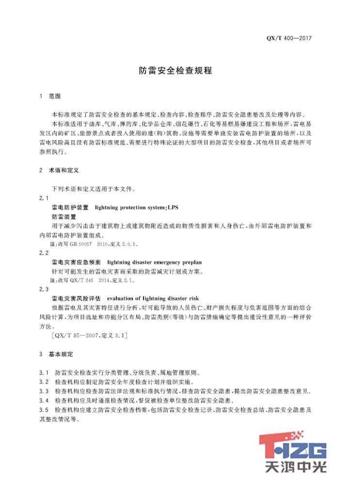 防雷安全檢查規(guī)程 QX/T400-2017