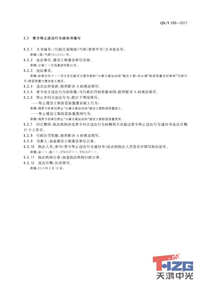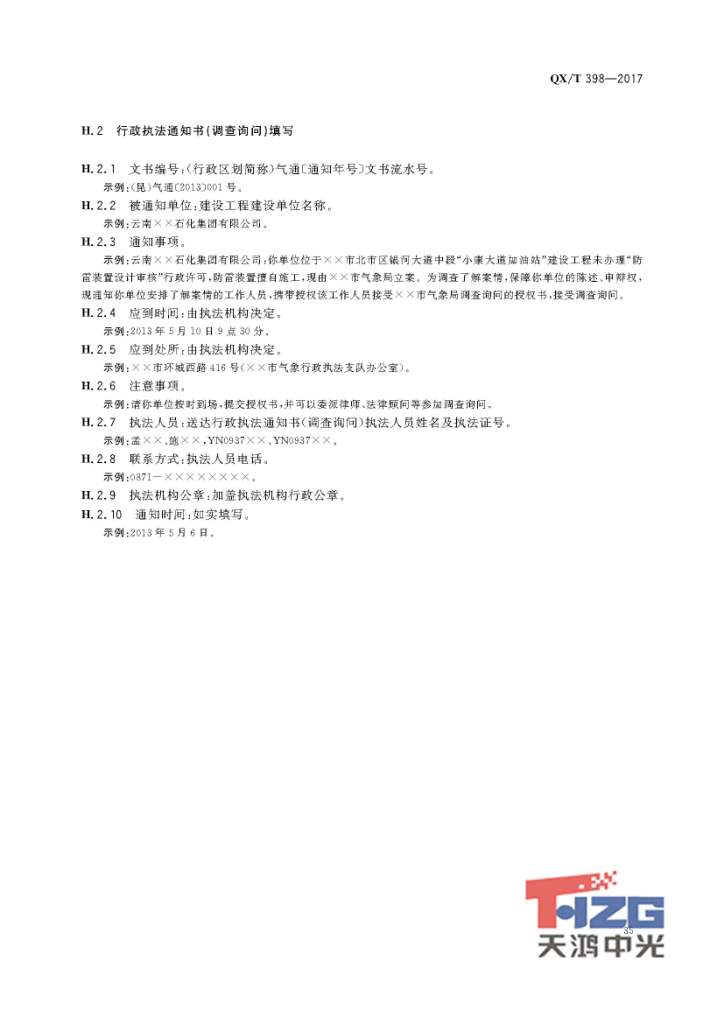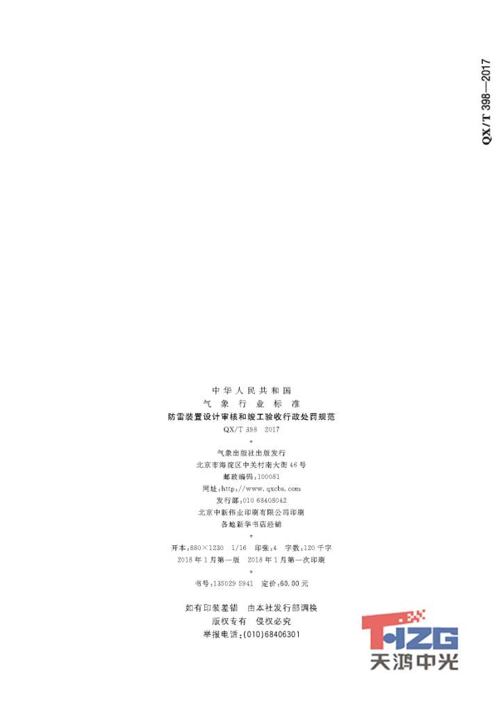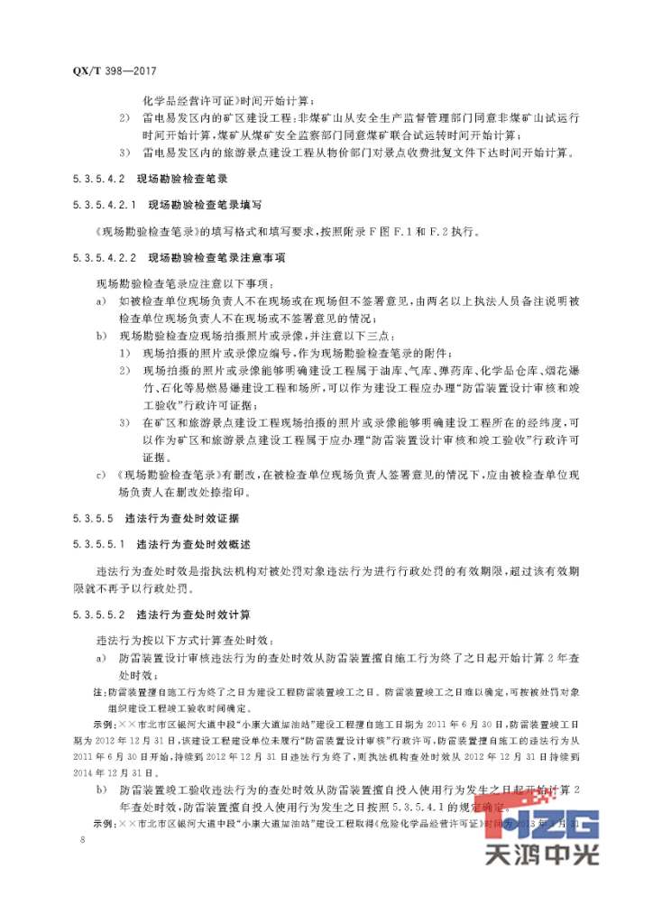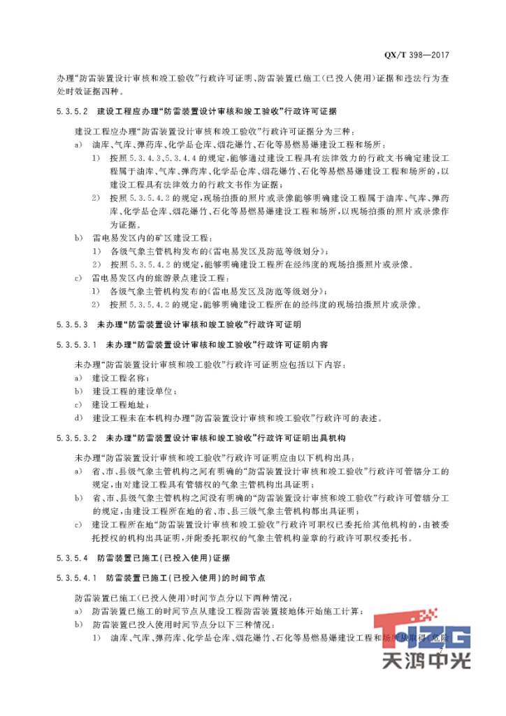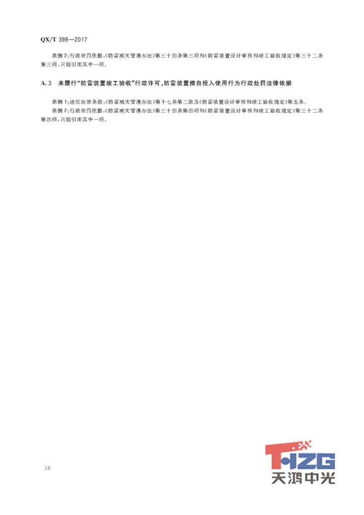 防雷裝置設計審核及竣工驗收行政處罰規(guī)范 QX/T398-2017