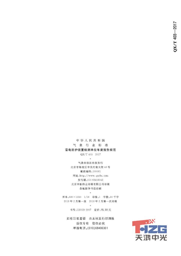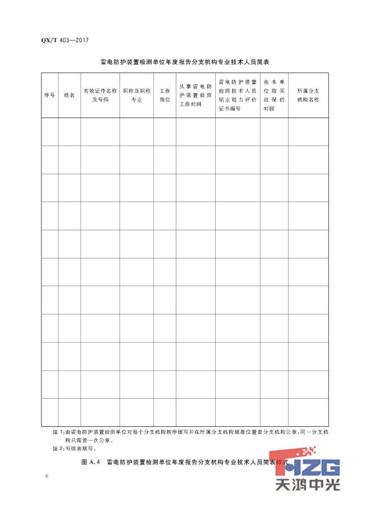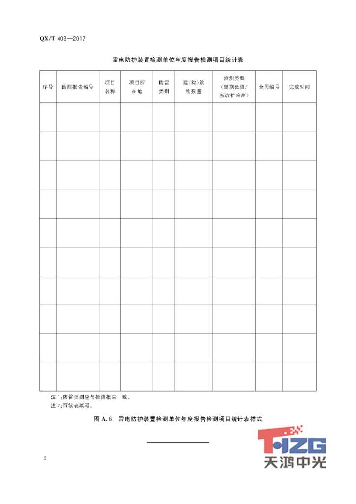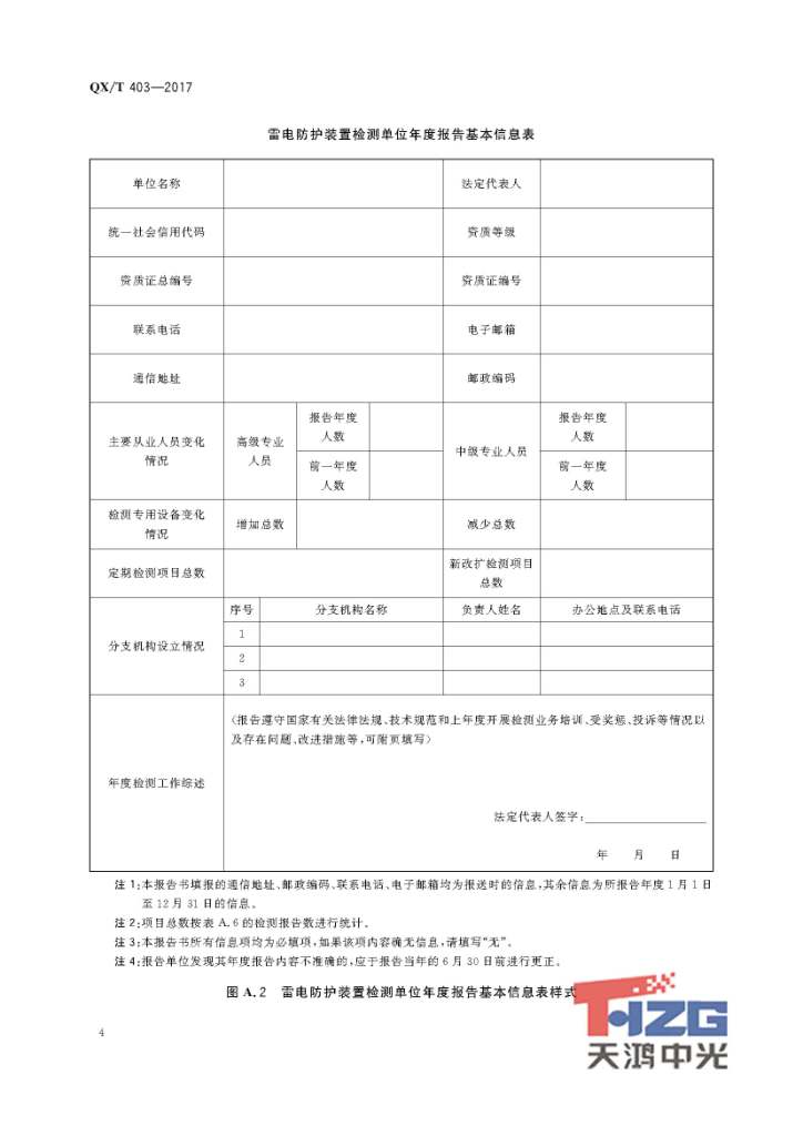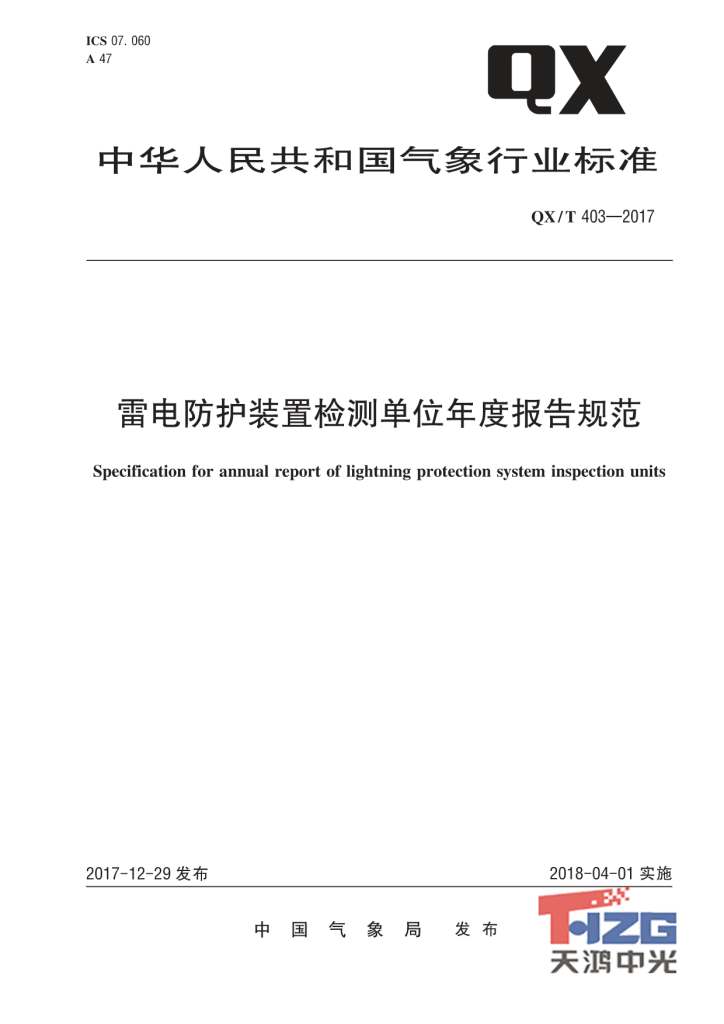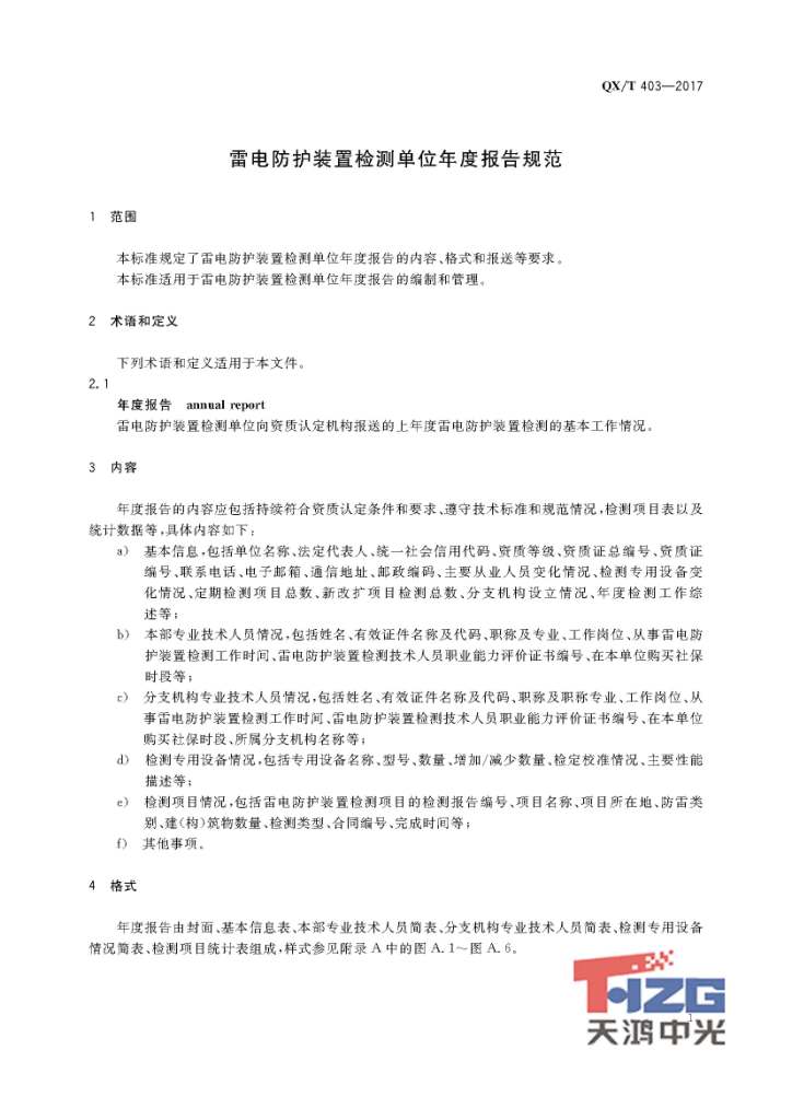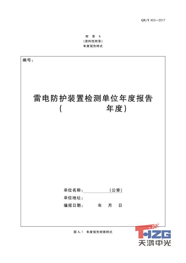 雷電防護裝置檢測單位年度報告規(guī)范 QX/T403-2017