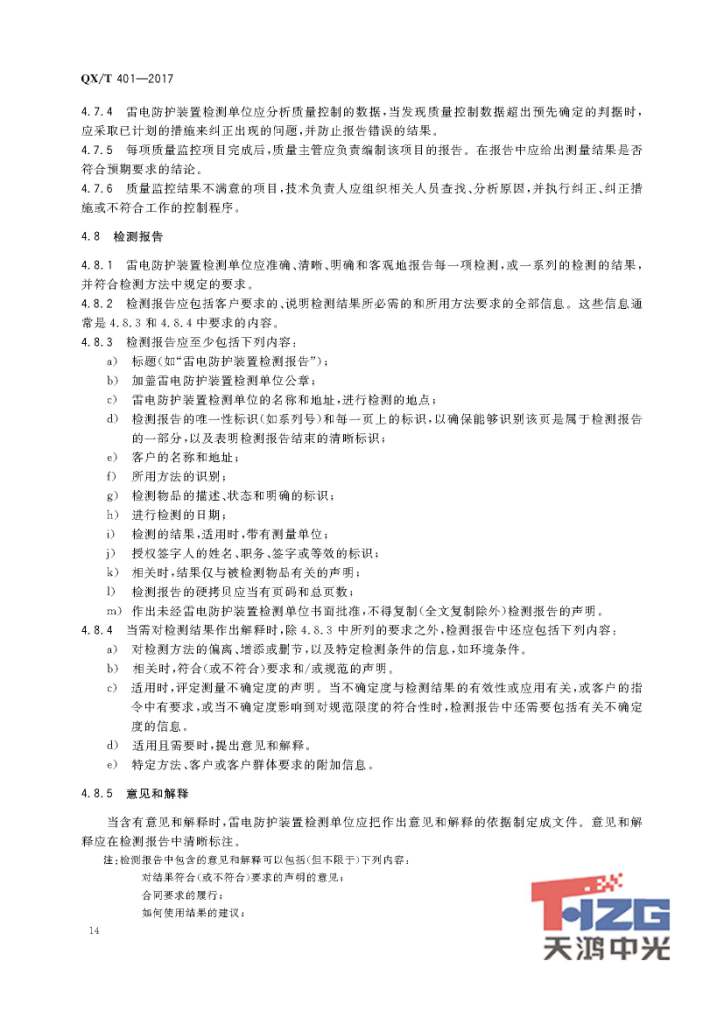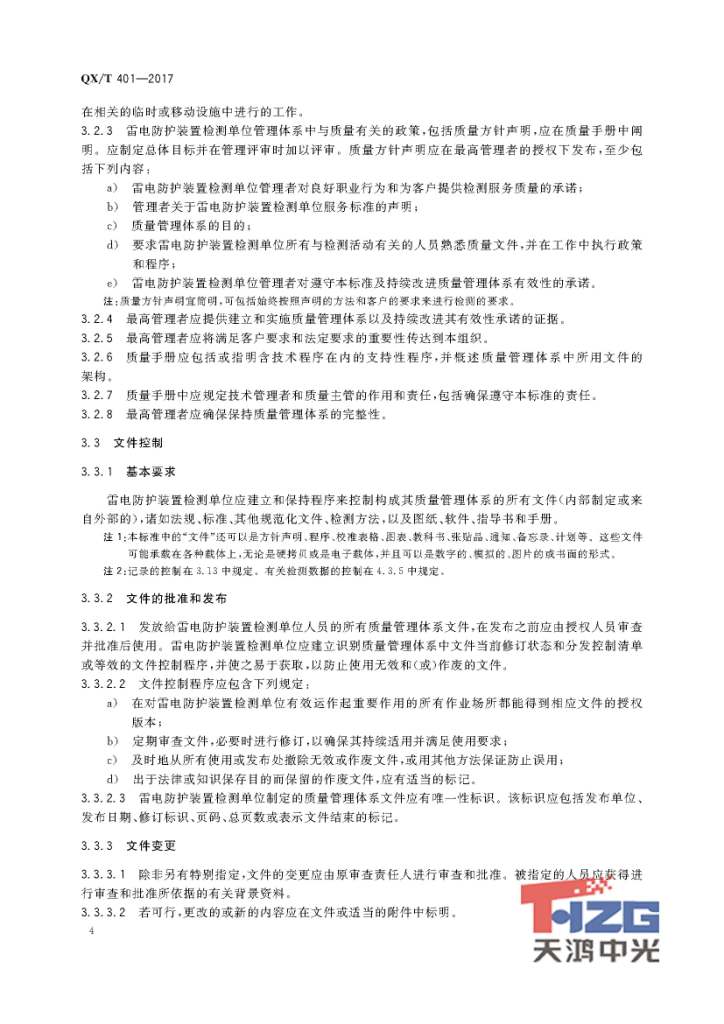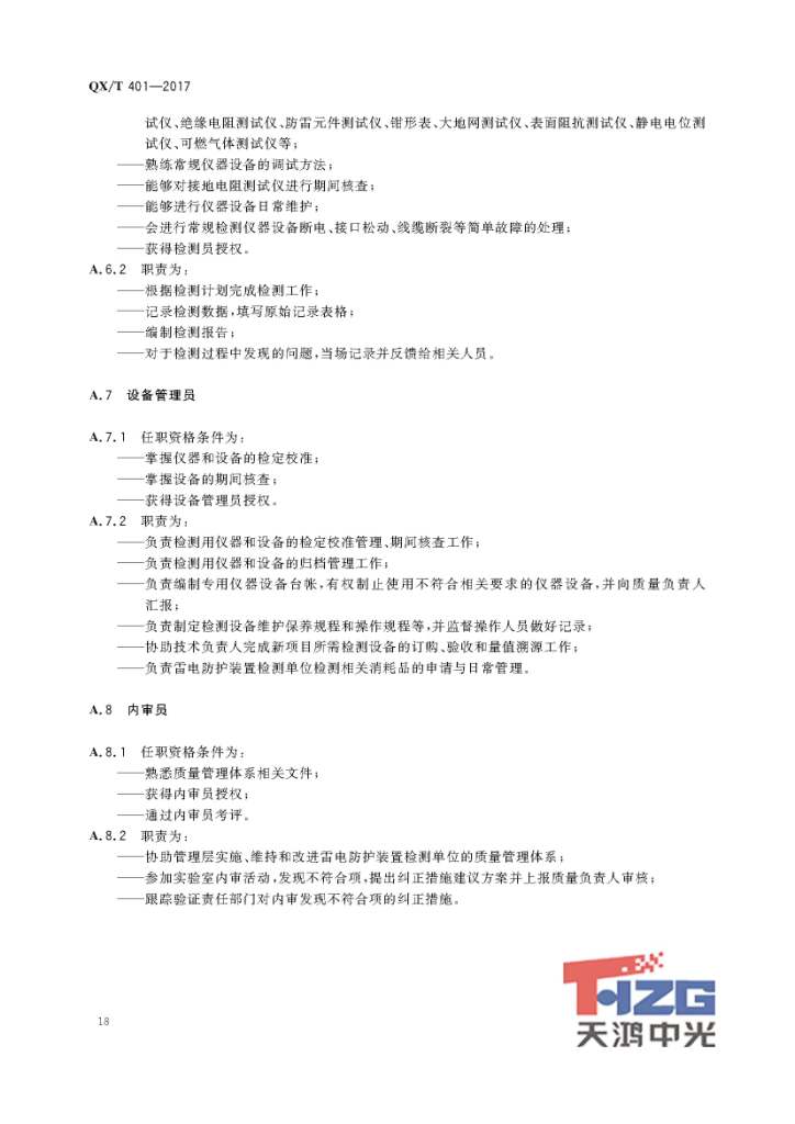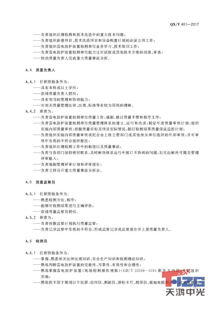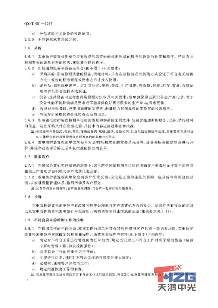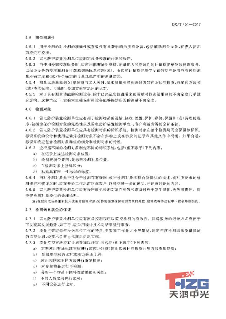雷電防護(hù)裝置檢測(cè)單位質(zhì)量管理體系建設(shè)規(guī)范 QX/T401-2017