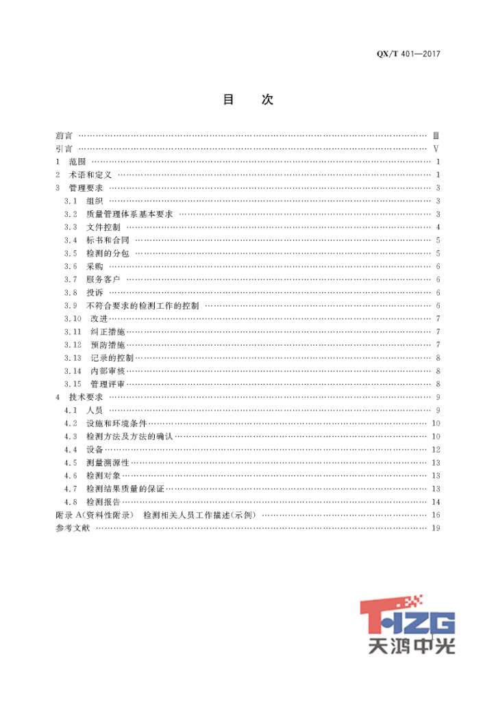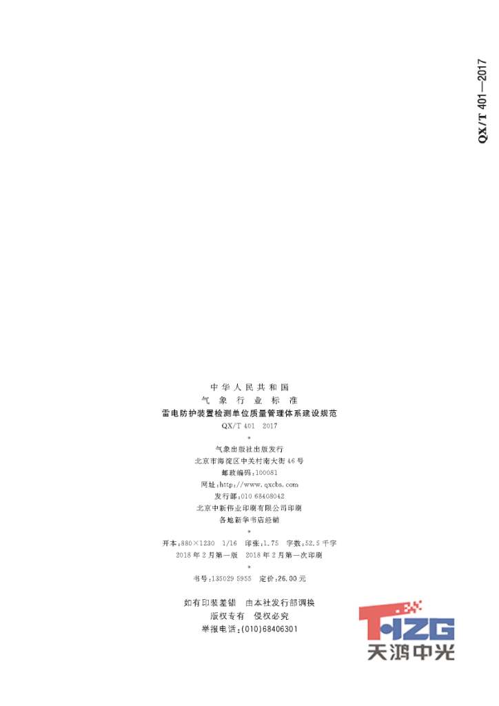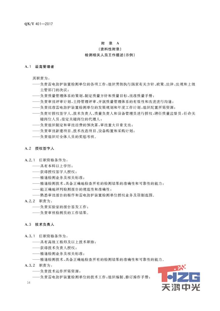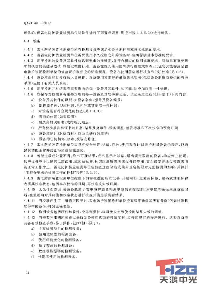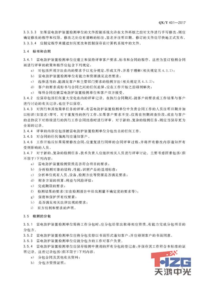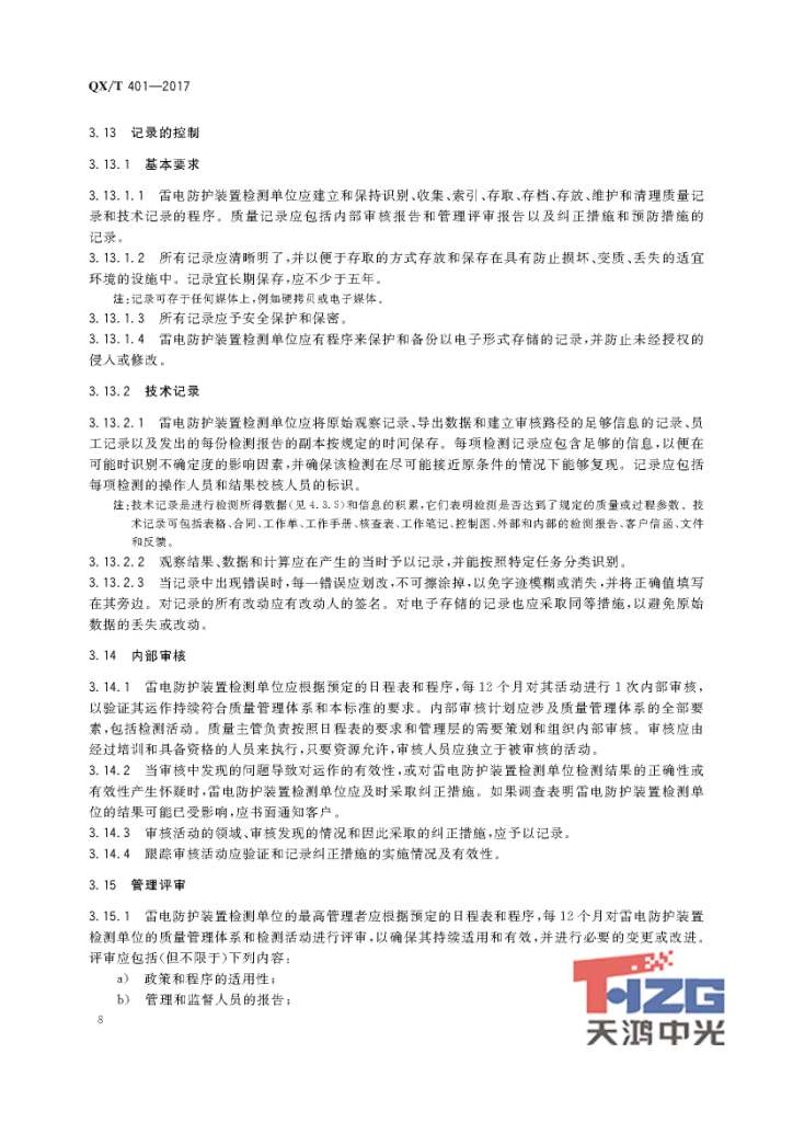 雷電防護(hù)裝置檢測(cè)單位質(zhì)量管理體系建設(shè)規(guī)范 QX/T401-2017