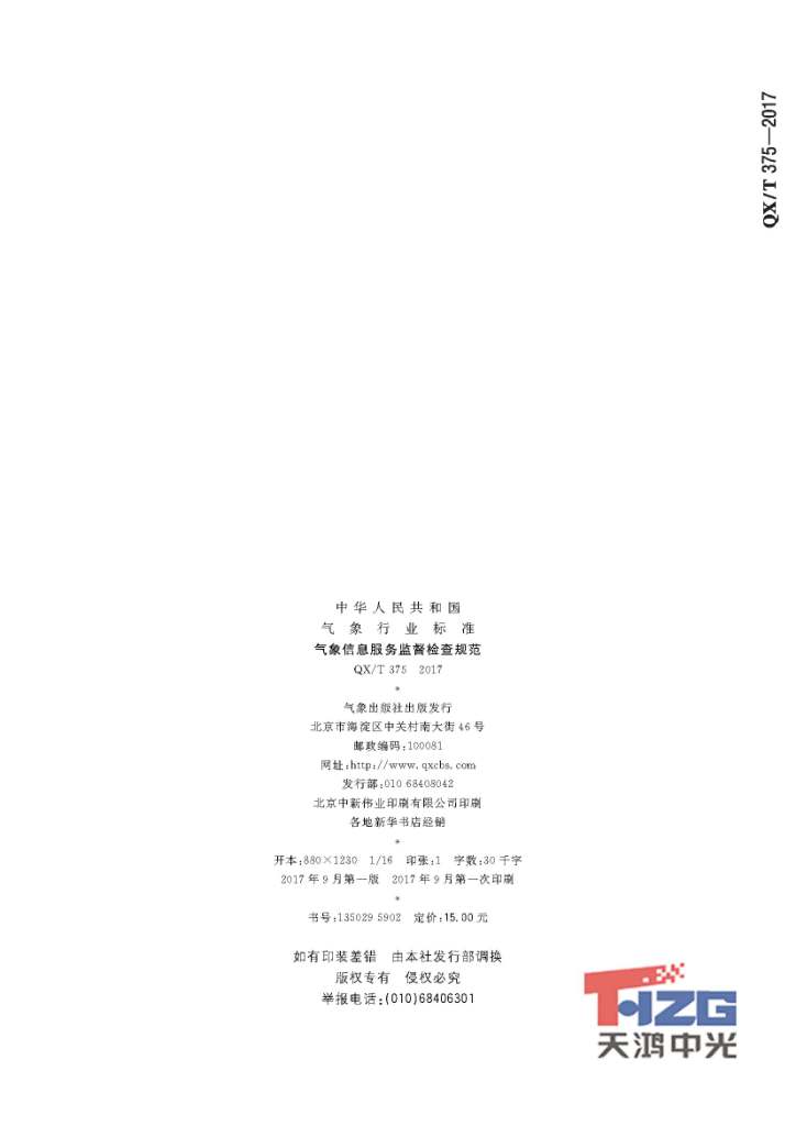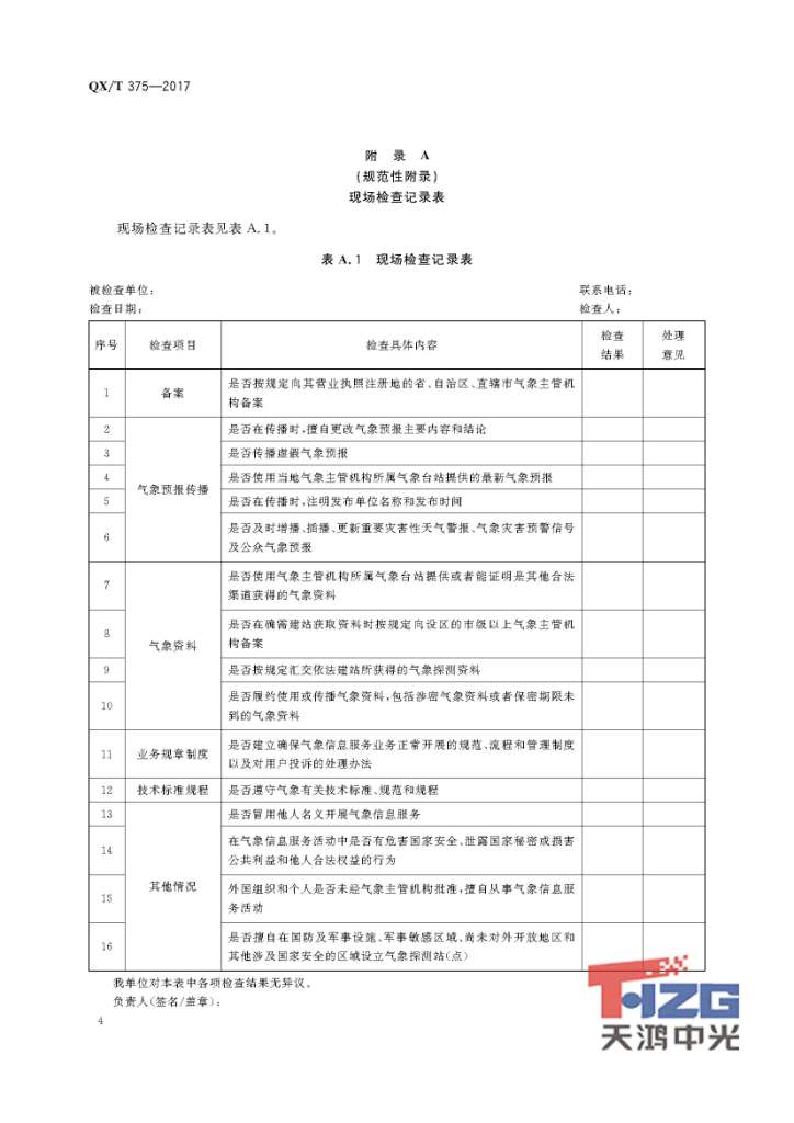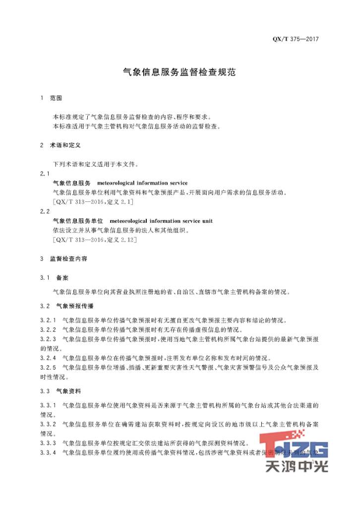 氣象信息服務(wù)監(jiān)督檢查規(guī)范 QX/T375-2017