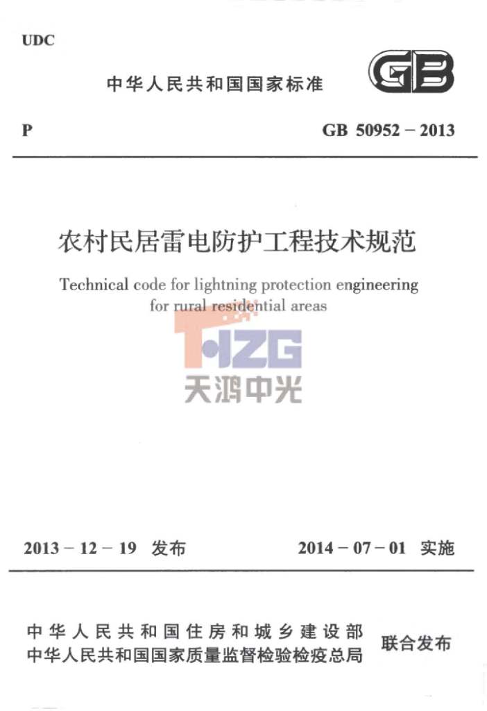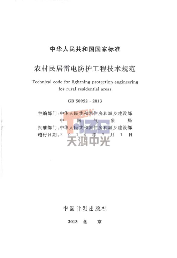 農(nóng)村民居雷電防護工程技術(shù)規(guī)范 GB 50952-2013
